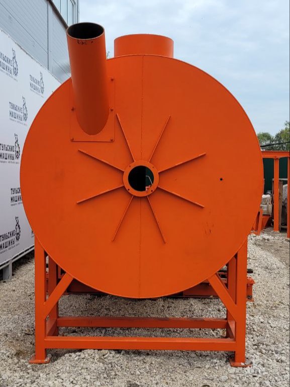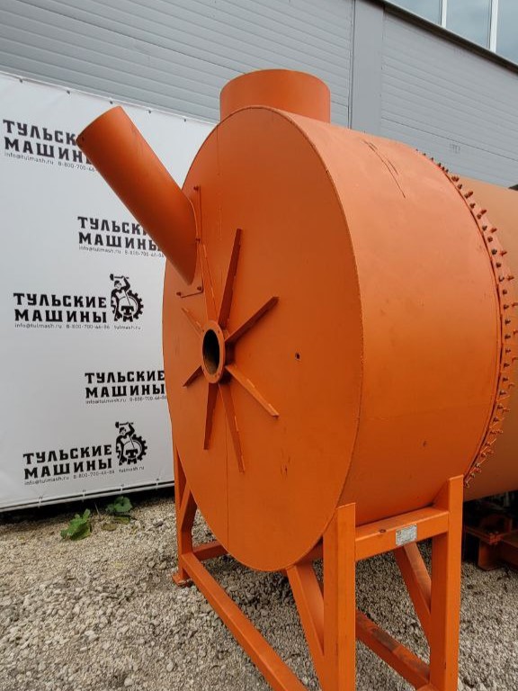 В загрузочной части 8 барабана присутствует отверстие для приточной вентиляции 12, необходимой для поступления теплоносителя в барабан. Приточная вентиляция в комплект поставки не входит. Сушильный барабан укомплектован устройством выгрузки 17.