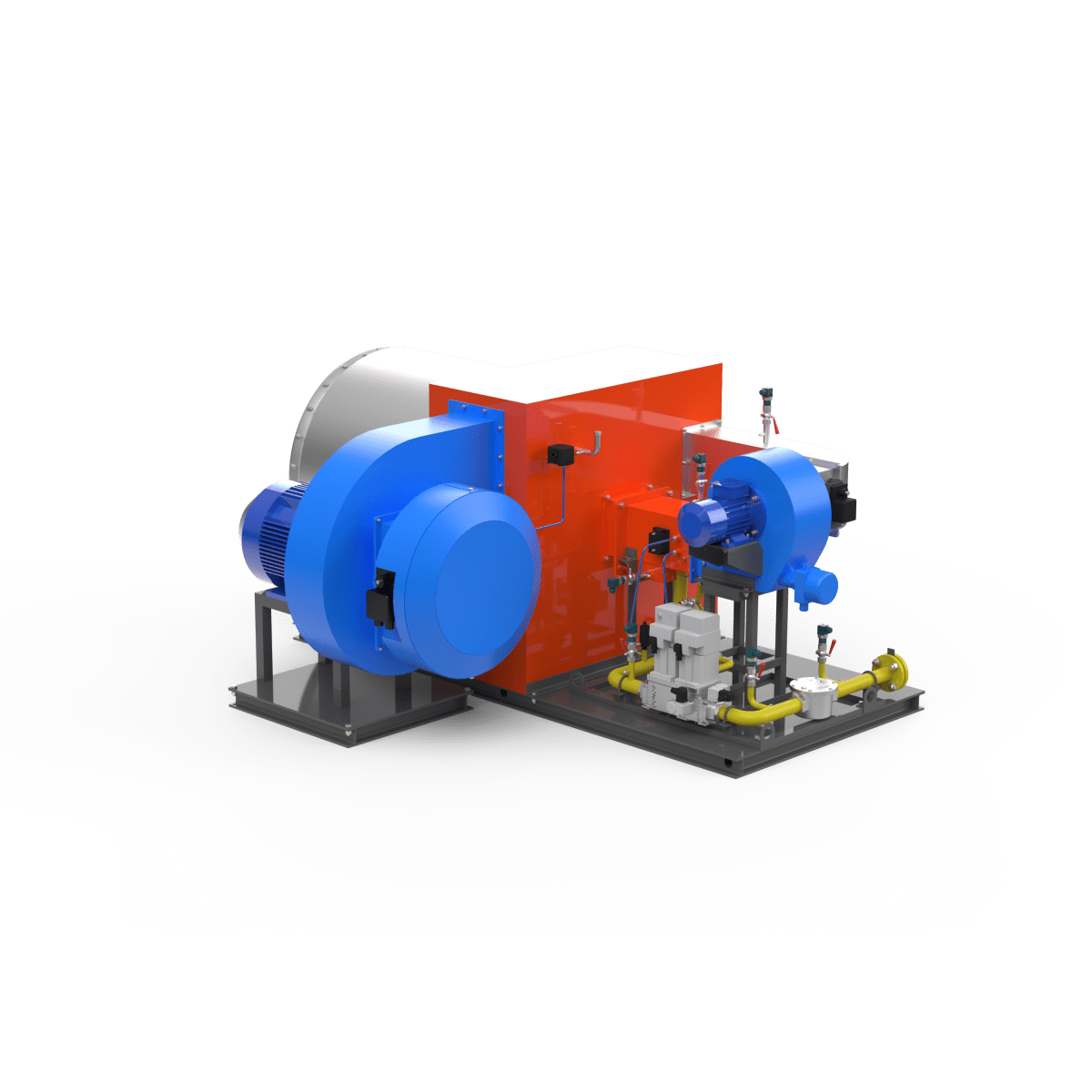 Воздухонагреватели (теплогенераторы) газовые промышленные смесительные серии СВТ служат для получения теплоносителя (газообразное вещество, применяемое для передачи тепловой энергии), который представляет собой смесь воздуха и продуктов сгорания природного газа. Тепло от факела, в нашем случае, от газовой промышленной блочной горелки, и продуктов сгорания передается по воздуху путем прямого контакта (смешения), поэтому наши теплогенераторы являются воздухонагревателями прямого нагрева. Теплогенератор представляет собой конструкцию из газовой промышленной блочной горелки, камеры сгорания смесительного типа, смонтированных на одной раме, вентиляторов, автоматики безопасности и управления.